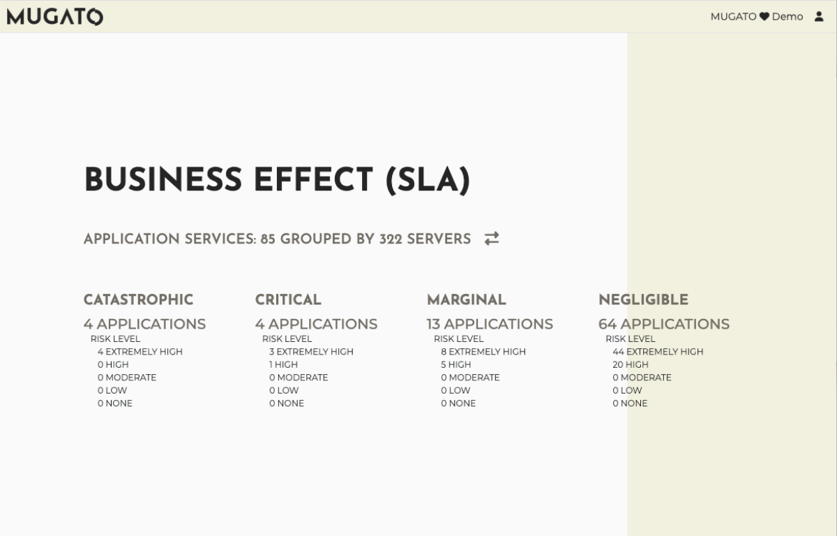 Every application service is evaluated across seven dimensions and gets assigned a business impact classification by your team.