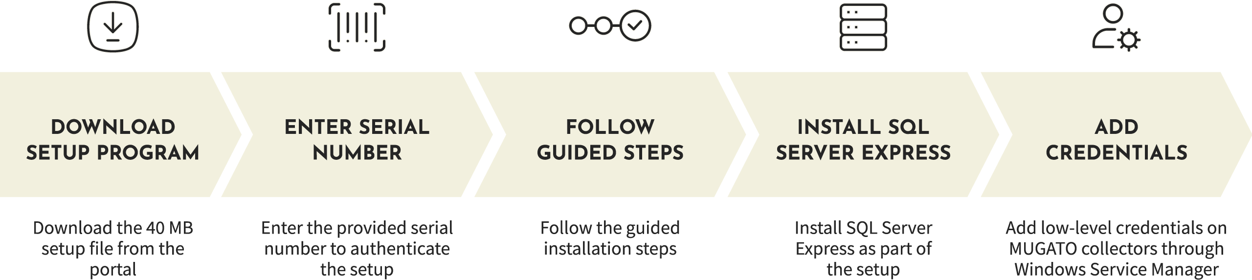Installing Mugato is a simple process that takes roughly 10 minutes during an online meeting. Mugato doesn’t come with an out-of-the-box appliance. Instead, we ask you to bring a clean virtual server created based on your trusted templates so you don’t need to verify tens of thousands of other files that might come with an out-of-the-box solution.